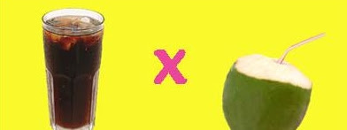 1 copo de refrigerante (140 kcal) x 1 água-de-coco (61,2 kcal)