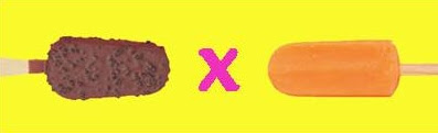 1 picolé de chocolate (106,6 kcal) x 1 picolé de frutas (64,9 kcal)